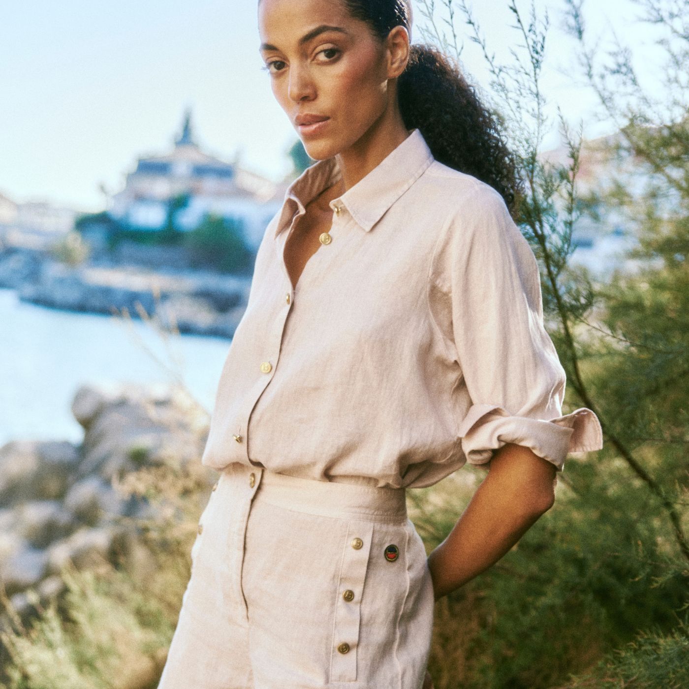 Busnels linnekollektion består av tidlösa garderobsfavoriter i högkvalitativt, naturligt linne. Linnebyxor, linneshorts, klänningar och skjortor är alla detaljerade med våra ikoniska guldfärgade knappar, som ger kollektionen en subtil men exklusiv känsla av lyx.